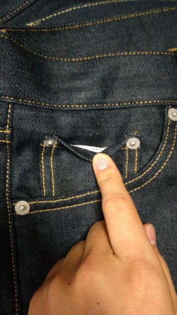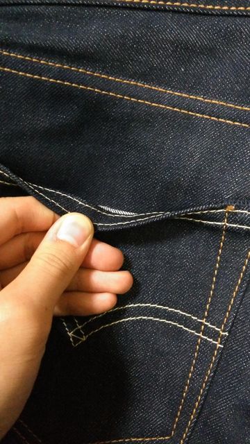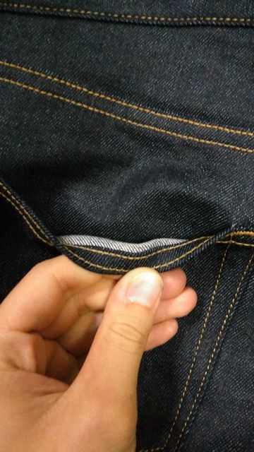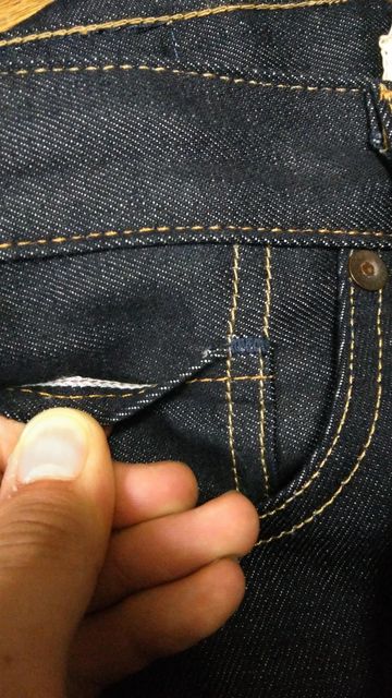 コインポケット裏はやっぱりセルビッジ、シングルステッチや