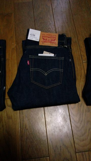 タグ表記はユニクロがW29、511はW29L32、シャトルはW29L34