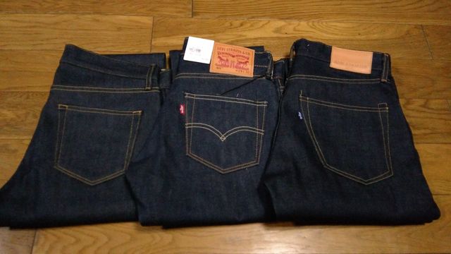 3つともリジッド(未洗い、糊付き)なんやが硬さが全然違うやで